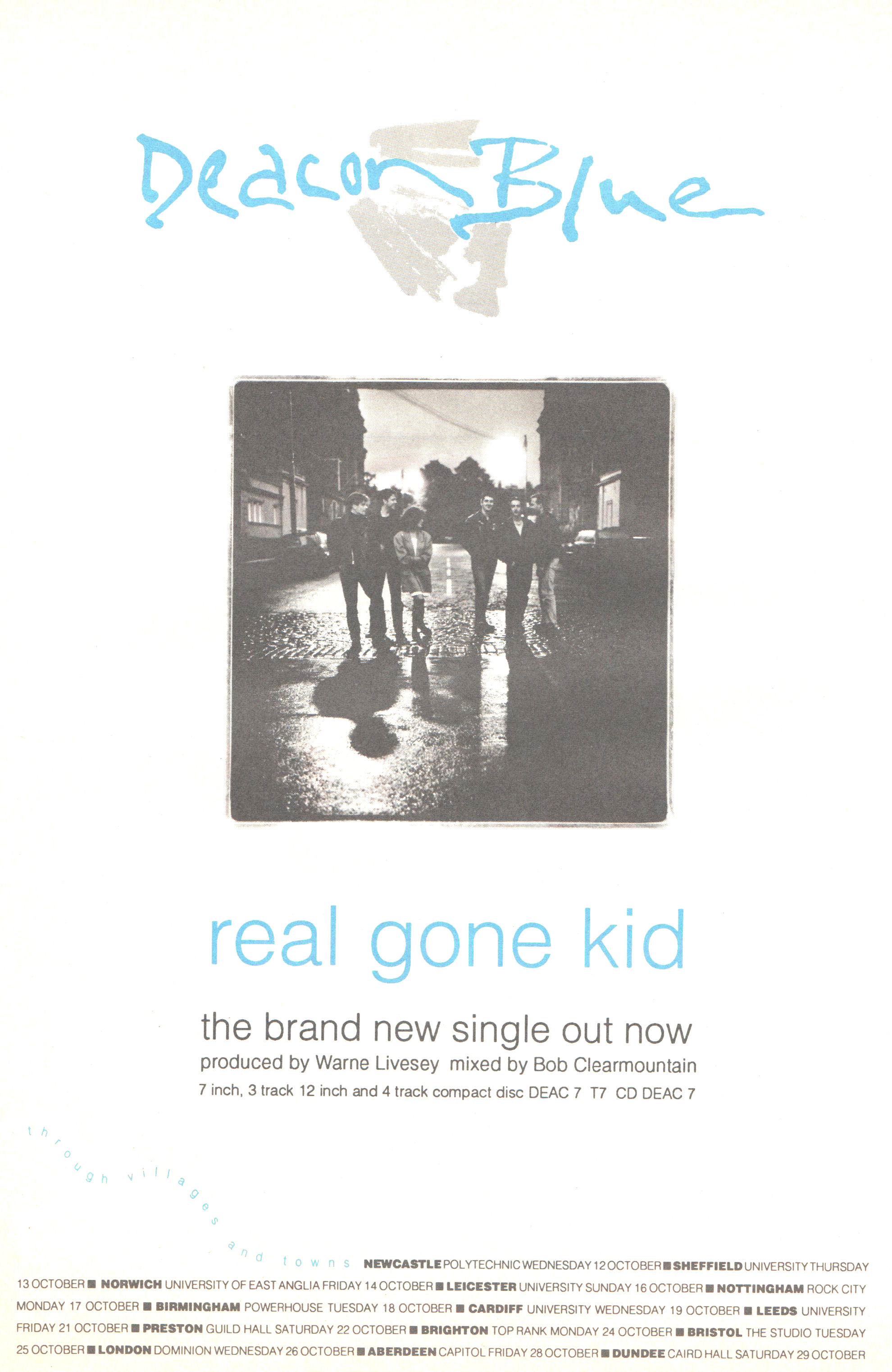 Inspired by watching the frenetic live performances of Maria Mckee, lead singer of the band Lone Justice. Ricky penned Real Gone Kid in 1987 and the song was soon part of the Deacon Blue live set, over a year before it was finally released.