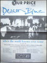 One of the later songs to appear in the Deacon Blue live set, this demo of One Hundred Things has a fairly loose vocal from Ricky. All the lyrics are present and correct and Jim's part is largely the same as what made the record. One Hundred Things (Demo).